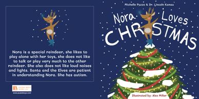 Nora is a special reindeer, she likes to play alone with her toys, she does not like to talk or play very much to the other reindeer. She also does not like loud noises and lights. Santa and the Elves are patient in understanding Nora. She has autism.